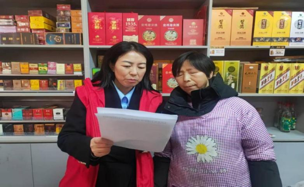 图为“零户帮”成员为零售户优化货物摆放布局。