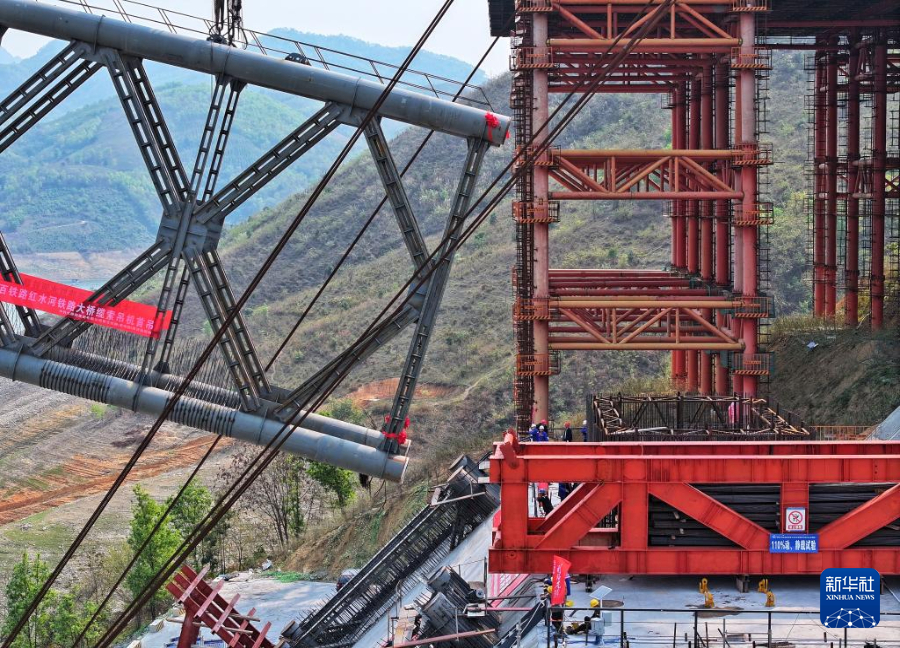 3月21日,由中铁大桥局承建的黄(桶)百(色)铁路红水河铁路大桥首节拱肋成功吊装。该桥位于黔桂交界处,横跨红水河,全长约1022米,主跨达570米,是全线控制性工程。