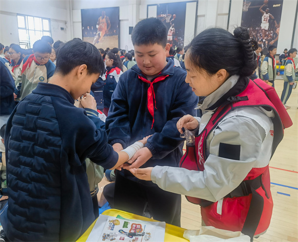 趣味互动为课堂添彩,完成学习体验的学生均可领取急救主题绿书签,极大激发了大家的参与热情。现场指导声、实操声交织成充满活力的学习氛围,让“人人学急救、急救为人人”的理念深入人心。