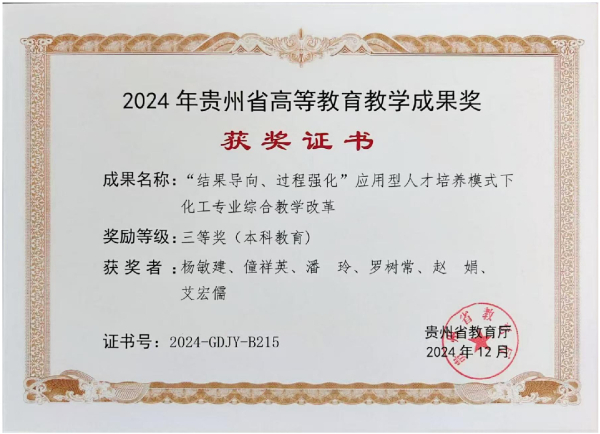 “我们培养的是懂技术、懂市场、懂管理,有情怀、有担当的高水平应用型人才。”化工专业负责人僮祥英副教授表示,“2024年,我们的育人成果《‘结果导向、过程强化’应用型人才培养模式下化工专业综合教学改革》获得贵州省高等教育教学成果奖。卢鸿的成功,正是对我们人才培养模式最有力的证明。”