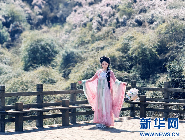 3月26日,游客在杜鹃花海中打卡。新华网发(兰昆 摄)