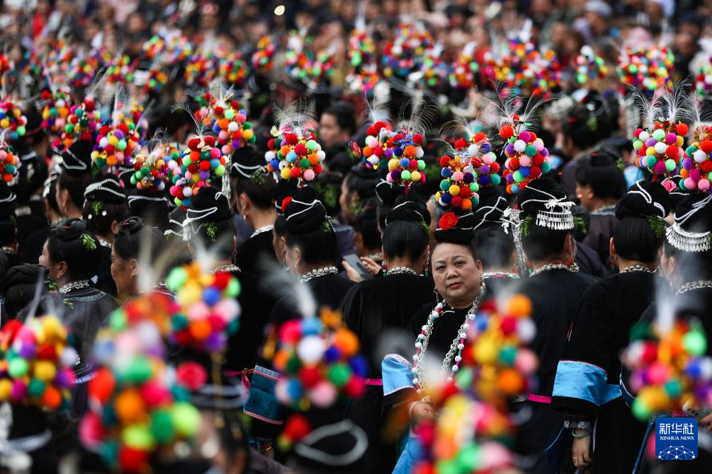 3月28日,侗族群众在贵州省榕江县三宝侗寨参加“萨玛节”活动。新华社发(李长华摄)