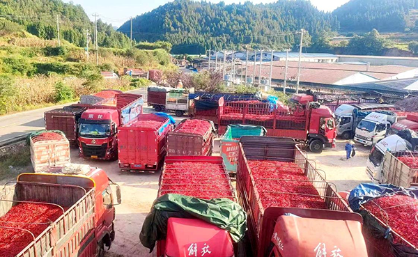 辣椒、西红柿等原材料陆续收购装车