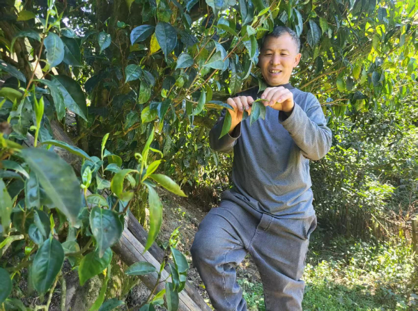 “休息下,喝口我们凤凰村特有的古树茶,一会再去采摘古树茶青。”曾庆强看到笔者一行到来,立即迎了出来,把笔者一行请到家里,端上新泡的古树茶。“这是我前几天采摘的古树茶青加工出来的新茶,品尝下,给我们提供下建议。”“今年是第一次品尝新采摘加工出来的古树茶,很好喝。茶汤金黄,也很好看。”随行的尧龙山镇干部郭明财喝了一口新加工的古树茶后,感慨不已。