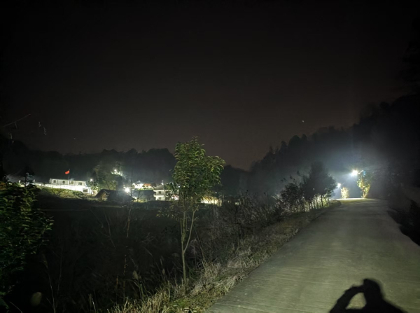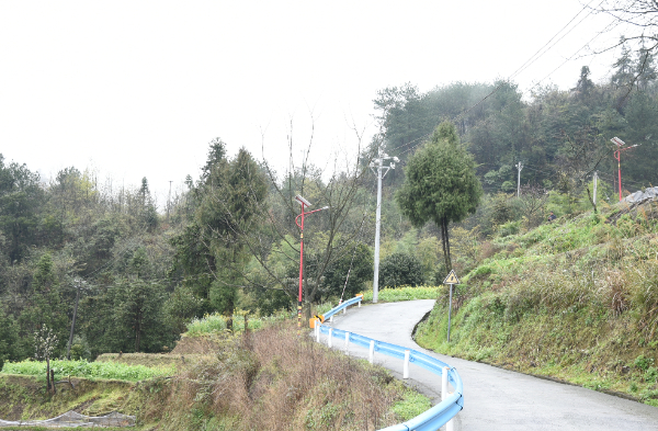 太阳能路灯照亮村组公路。(祝曾 摄)