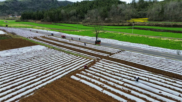 岑巩县天马镇烟田深翻起垄覆膜现场。(钟璐摄)