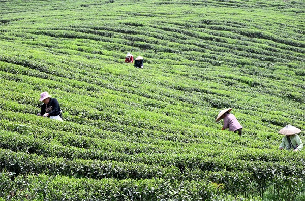 岑巩县天马镇生态茶园,村民在采茶。(钟璐摄)
