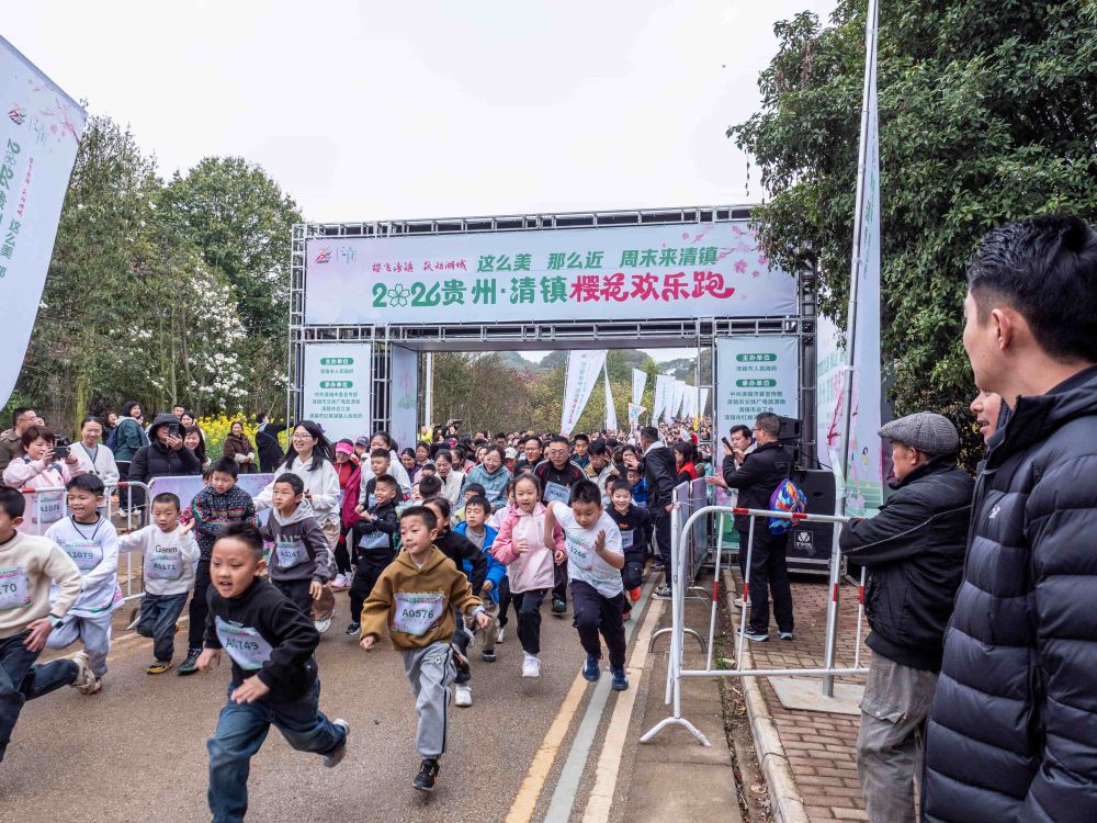 2026贵州・清镇樱花欢乐跑在红枫湖畔右二村樱花园开跑。余军 摄
