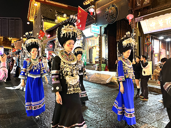 在旅游娱乐方面,近年来,铜仁市策划了梵净山登山祈福、铜仁特色好物展销、非遗表演等沉浸式体验活动,游客还可以近距离参与体验传统龙舟赛、中南门之夜、贵州音乐时光、“梵超”足球联赛等文旅体活动以及花灯、四面鼓、傩戏、舞龙等非遗展演活动。