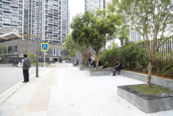 在与赵佳交谈的过程中,时有家长凑上前来对此举表示满意与称赞。家住未来方舟F10组团的陈女士说:“以前我们来接送小孩,可以说是‘肩并肩、脚挨脚’,偶尔还会发生几句争执。现在这条道路拓宽了,我们可以坐,也可以在较为显眼的地方等待小孩,接送环境变舒适了,我们的心情也跟着更加舒心了。”