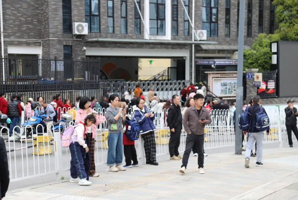 该校校长赵佳看到眼前家长们有序等待孩子放学回家的场景,脸上满是安心。她告诉笔者:“学校建立于2021年,当时只有5个班级,1米多宽的人行通道还暂时能满足上下学通行需求。现在学校已有51个班级2700多名学生,原本不宽敞的人行通道便显得更加拥挤,学校不得不采取错峰、错时、错年级放学的方式,来保障学生上下学安全。现在好了,你看,家长不仅站得不拥挤了,更有坐的地方,可真是解决了一个痛点。原来放学需要花1个半小时,现在只需要1个小时左右,也为学校老师减轻了压力。”