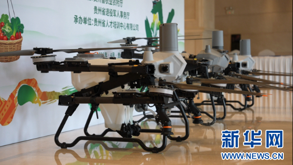 培训班开班仪式现场展示的农业无人机。新华网 卢志佳 摄