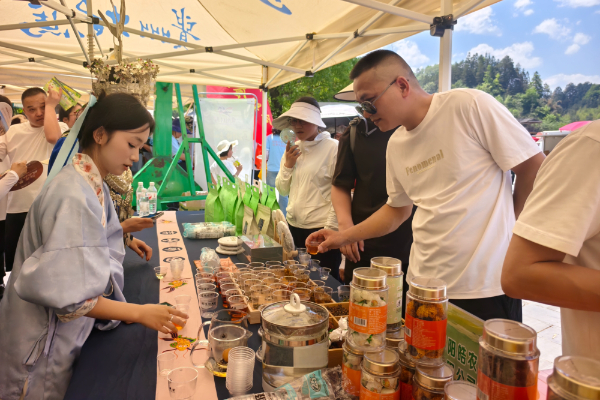 依托村马IP的超高热度,三都精心设计“村马+春茶+地质奇观”文旅融合打卡路线,串联咕噜景区产蛋崖等特色景点,邀请县内多家茶业、茶企到现场设点,集中展示、推介今年刚采的新茶,工作人员现场冲泡、讲解茶艺,让游客在观赛事、赏民俗的同时,近距离品味三都春茶的清鲜口感,感受“春山品茗香”的活动魅力,实现“以赛促茶、以茶兴旅”。