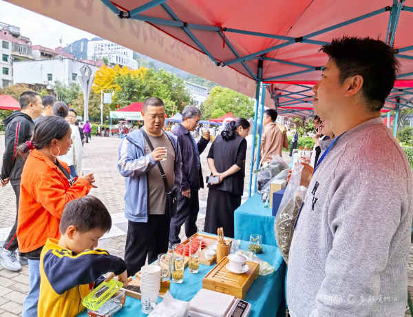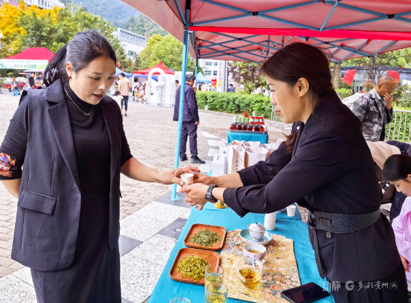 上午10时,免费品茶区率先开放。古树红茶的醇厚甘润、古树绿茶的清鲜爽口交织成独特韵味,市民围坐品鉴、畅聊茶趣,在唇齿留香中感受“沿河古茶”的魅力;“游乌江山峡·品沿河古茶”标语与打卡点遍布现场,成为乌江边一道文旅新风景。