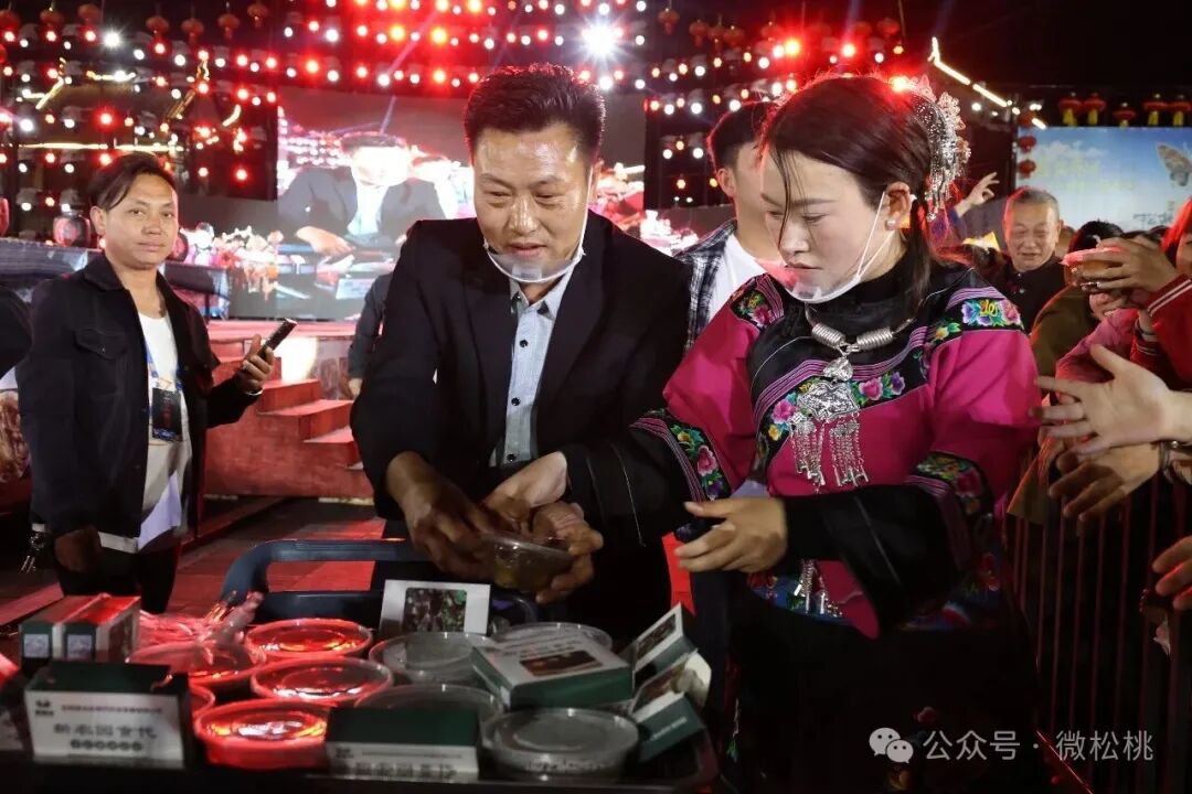 当晚,比赛在激昂的电音与全民参与的“蹦苗迪”热烈节奏中拉开帷幕。跃动的节拍瞬间点燃全场,现场抽取的五位幸运观众率先获得了一份来自家乡的礼物——松桃珍珠花生。