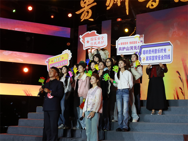 当晚,“贵州音乐时光”赛事还未正式启幕,舞台周边已是人头攒动、热闹非凡。主持人化身国家安全“宣传员”,用通俗易懂的语言,向现场市民讲解国家安全核心常识,围绕政治安全、经济安全、网络安全、生态安全等重点领域,用身边事解读大安全,引导群众认清国家安全与千家万户息息相关,人人都是参与者、建设者、守护者。