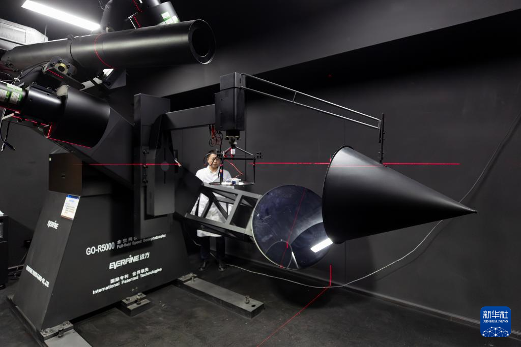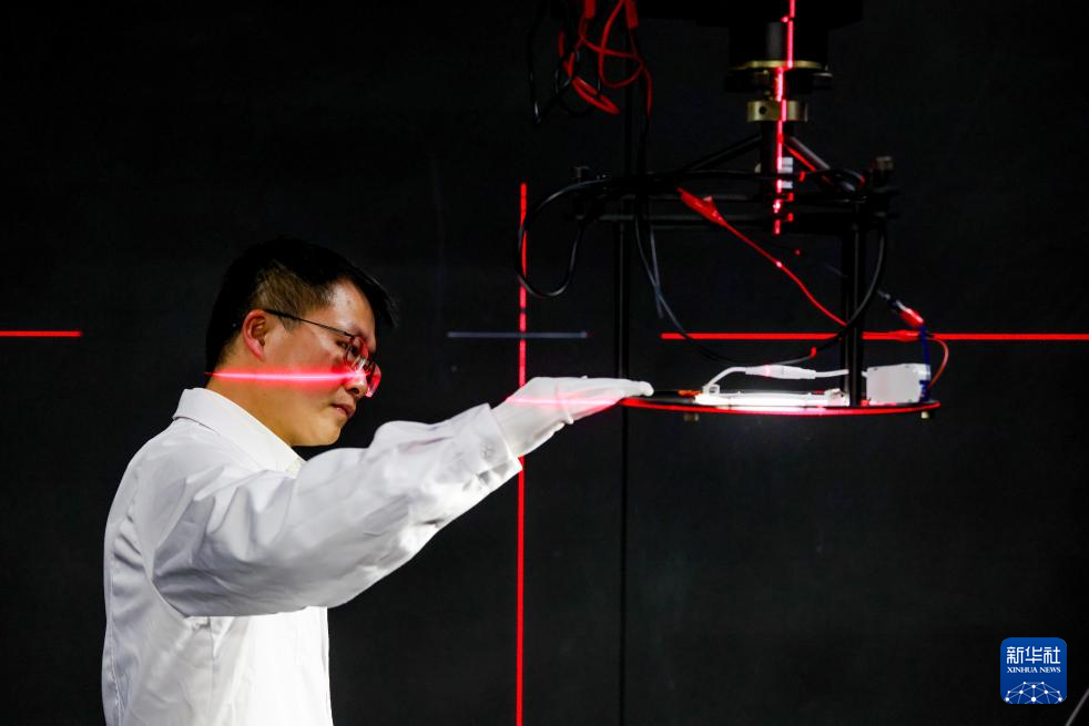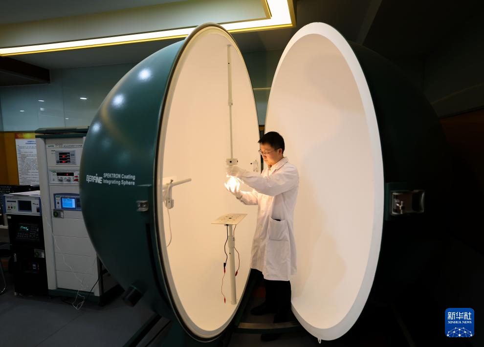 4月17日,技术员在贵州省毕节高新技术产业开发区的一家光学技术企业内对灯具光度性能进行检测。新华社发(李华摄)