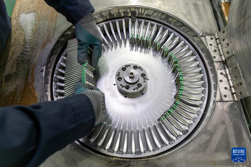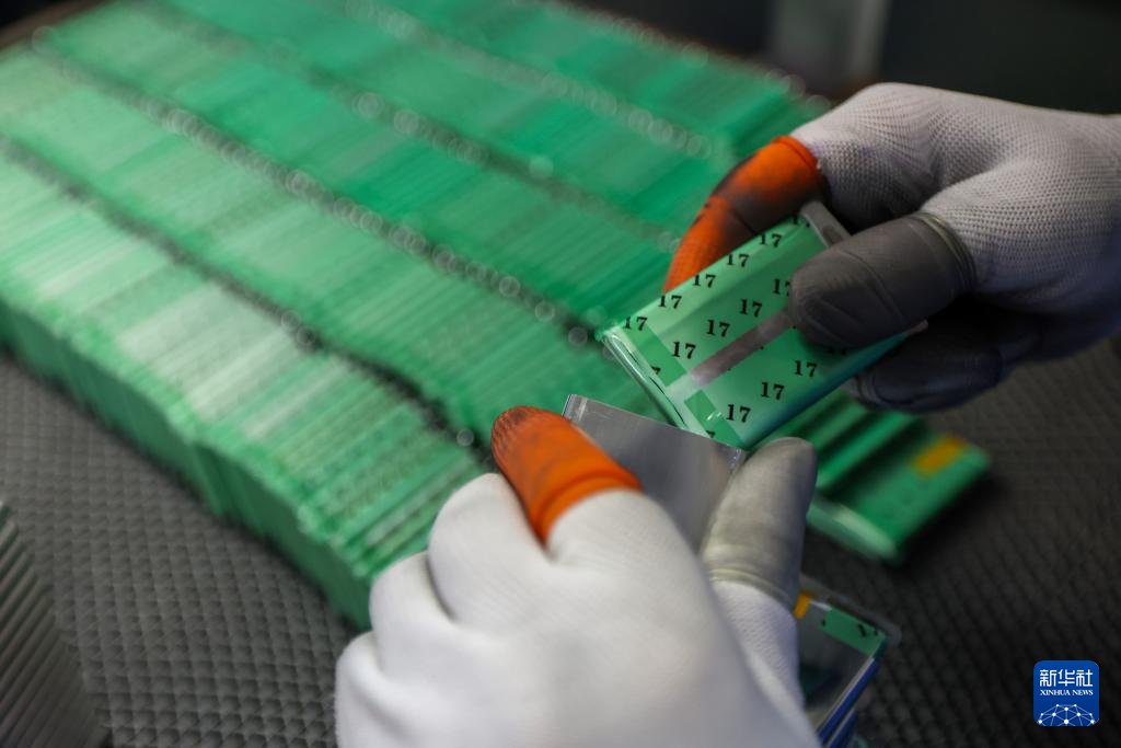 4月17日,在贵州省毕节高新技术产业开发区一家新能源电池企业,工人在组装锂电池。新华社发(韩贤普摄)