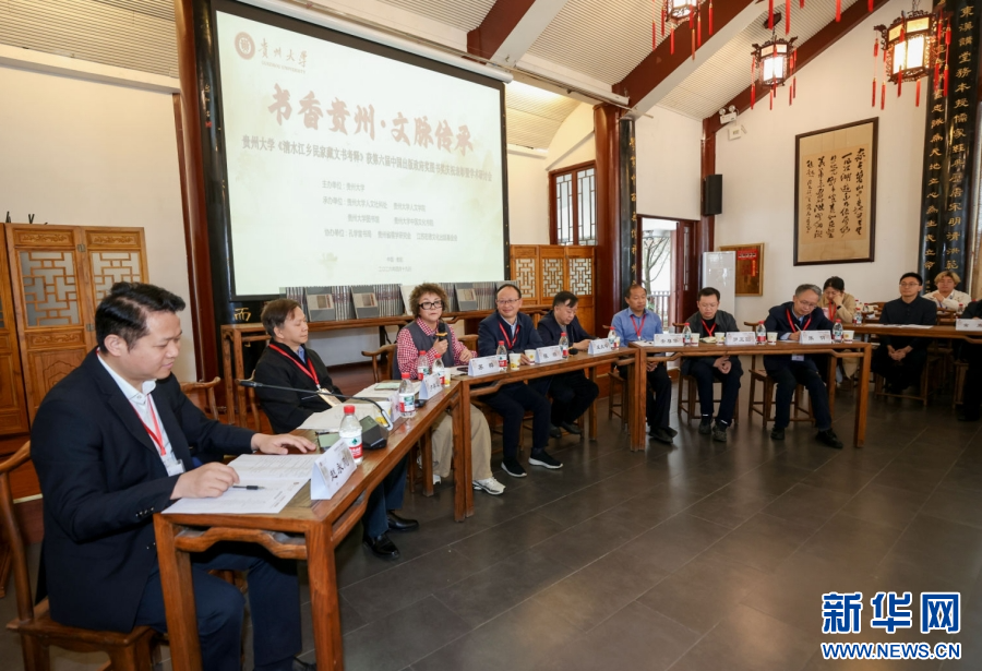 新华网贵阳4月20日电(黄勇)4月19日,《清水江乡民家藏文书考释》获中国出版政府奖图书奖庆祝表彰暨学术研讨会在贵州大学举行。贵州大学向图书编纂团队张新民教授团队颁发了“贵州大学科研特别贡献奖”。特邀的出版、文书学研究界的专家学者齐聚一堂,聚焦清水江文书的史料价值与学术地位,深入探讨其作为敦煌文书、徽州文书之外又一系统完整的民间契约文书宝库的独特价值。