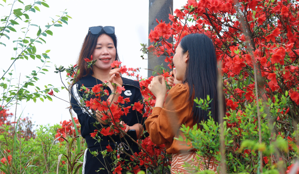 “今天我跟朋友一起来这里拍照打卡,漫山遍野都开满了杜鹃花,看起来非常漂亮,拍照也特别出片。”游客柏萍在拍照间隙高兴地分享道。她说,自己每年都来这里拍照,每一次都能收获别样景致和美好心情。