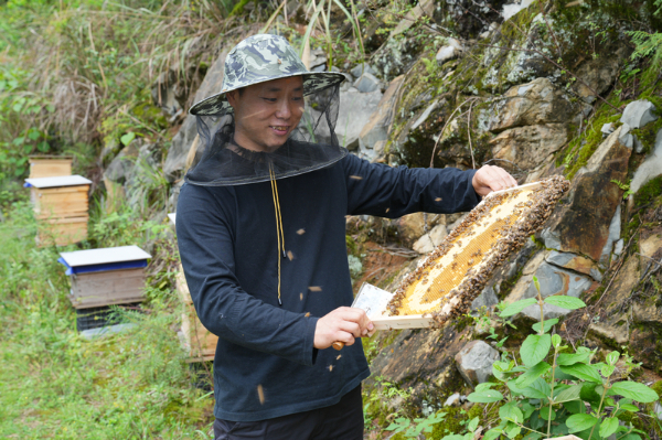火石镇农业服务中心工作人员王泽强介绍说,他们走到林间地头,就是为了帮蜂农做好精准管护,结合不同林地的蜜源情况、地势条件,面对面教蜂农科学摆放蜂箱、合理调控蜂群规模等,让蜂农养蜂有章法、增收有底气。
