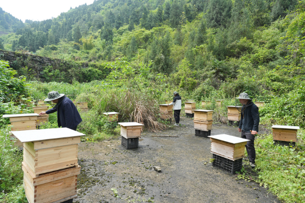 火石镇团山村蜂农开展管护工作。