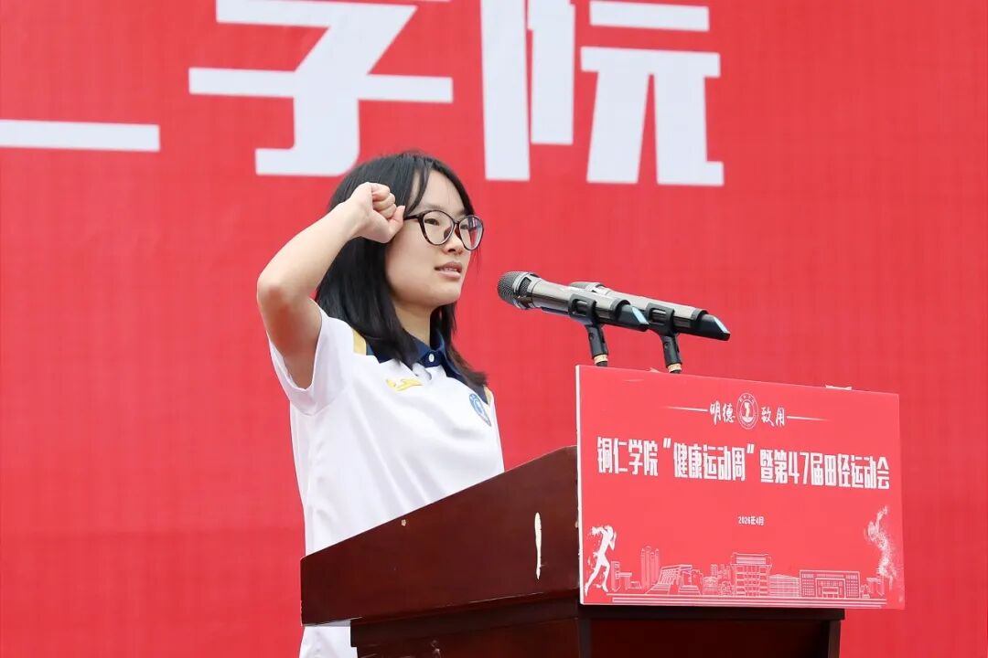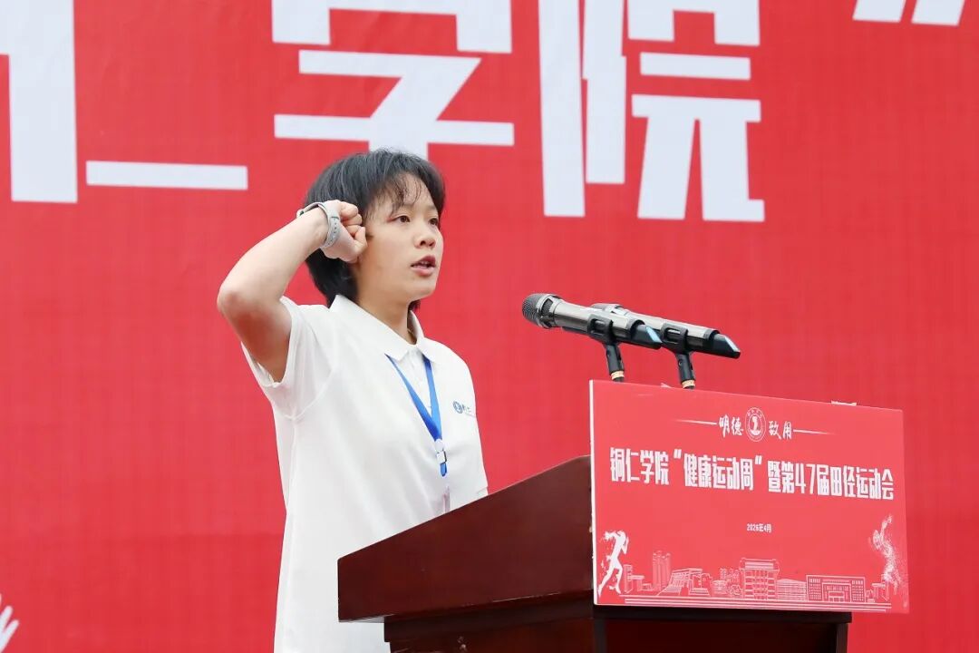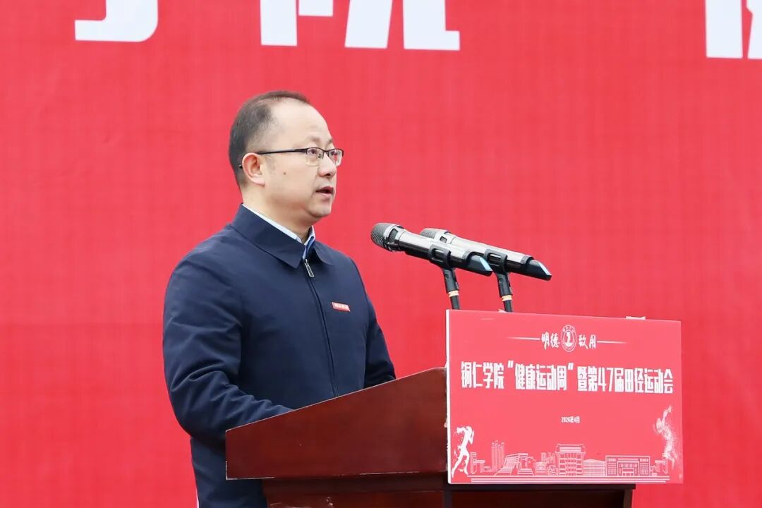 开幕式在庄严肃穆的国歌声中拉开帷幕。潘学军致辞,代表学校向运动会的胜利开幕表示热烈祝贺,向全体工作人员、运动员、裁判员致以诚挚问候。他指出,铜仁学院举办了47届校运会,这伴随着一代代铜院学子的成长。他寄语全体师生,要在赛场上锻造苦心励志的韧劲、开阔团结协作的胸襟、彰显躬行实干的担当,践行“更快、更高、更强、更团结”的体育精神,传承“苦心励志·追求卓越”的铜院精神,收获真正的成长。