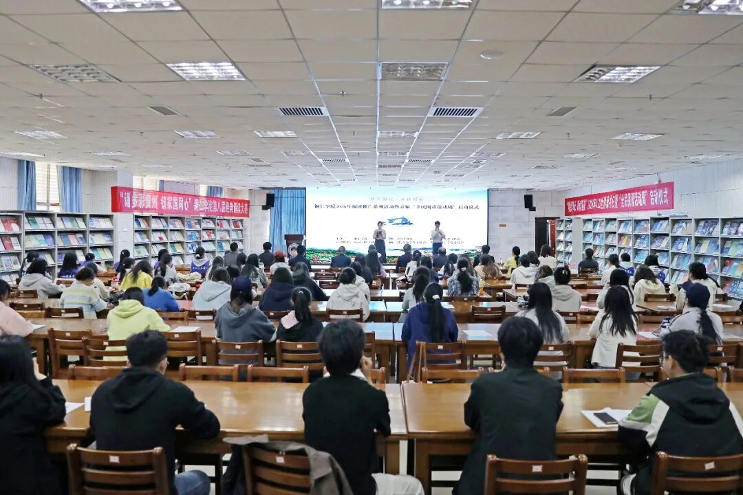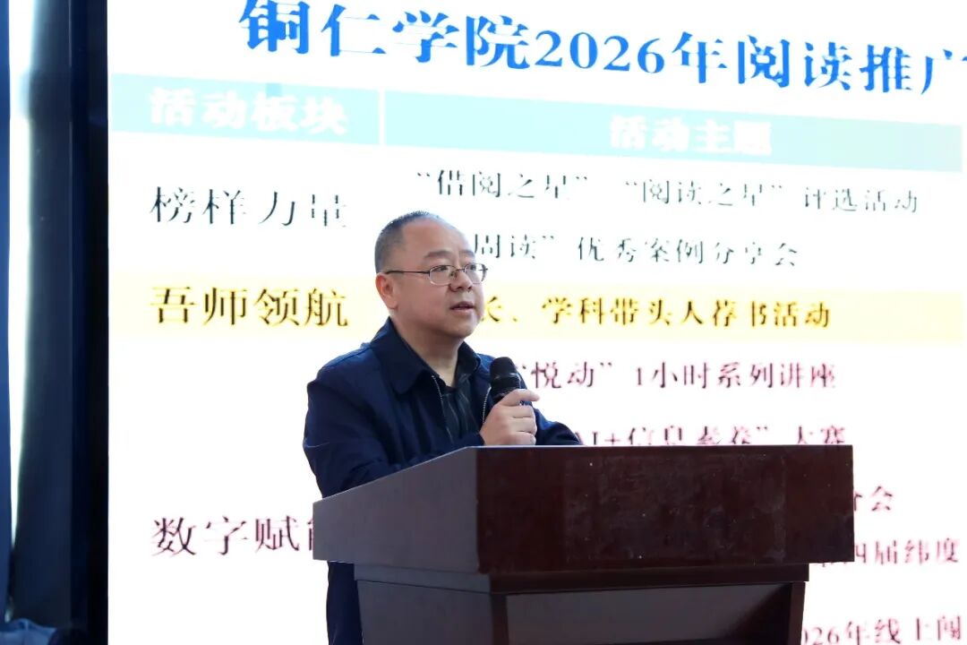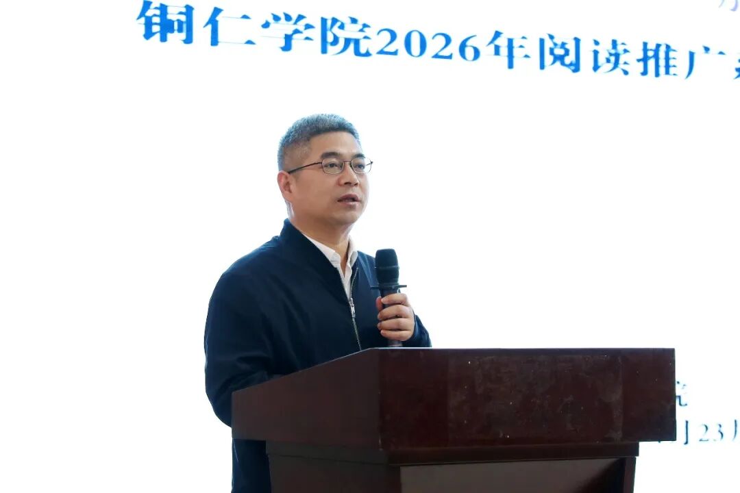 潘学军致辞说,深入推进全民阅读,是落实《全民阅读促进条例》的法定要求,更是学校立德树人、培育高素质人才的内在需要。铜仁学院以“明德印记·阅读领航”为主题开展系列活动,既是图书馆服务育人的集中展示,也是学风建设的生动实践。全体铜院人要在书香中擦亮“明德”底色,在阅读中校准人生航向,让阅读成为引领成长、成才、成功的强大力量。他向所有师生提出三点希望:第一,做“爱读书”的践行者;第二,做“读好书”的智慧者;第三,做“善读书”的奋斗者。