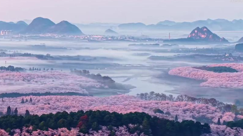 崇山花海春意浓 贵安万亩樱花竞相绽放