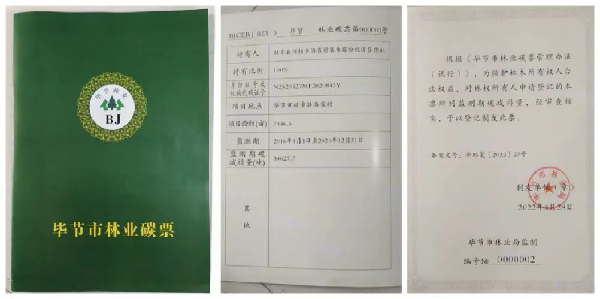 毕节市林业局为赫章县海雀村颁发的林业碳票