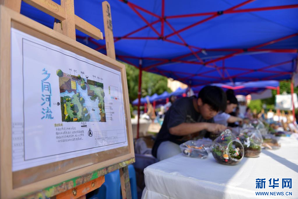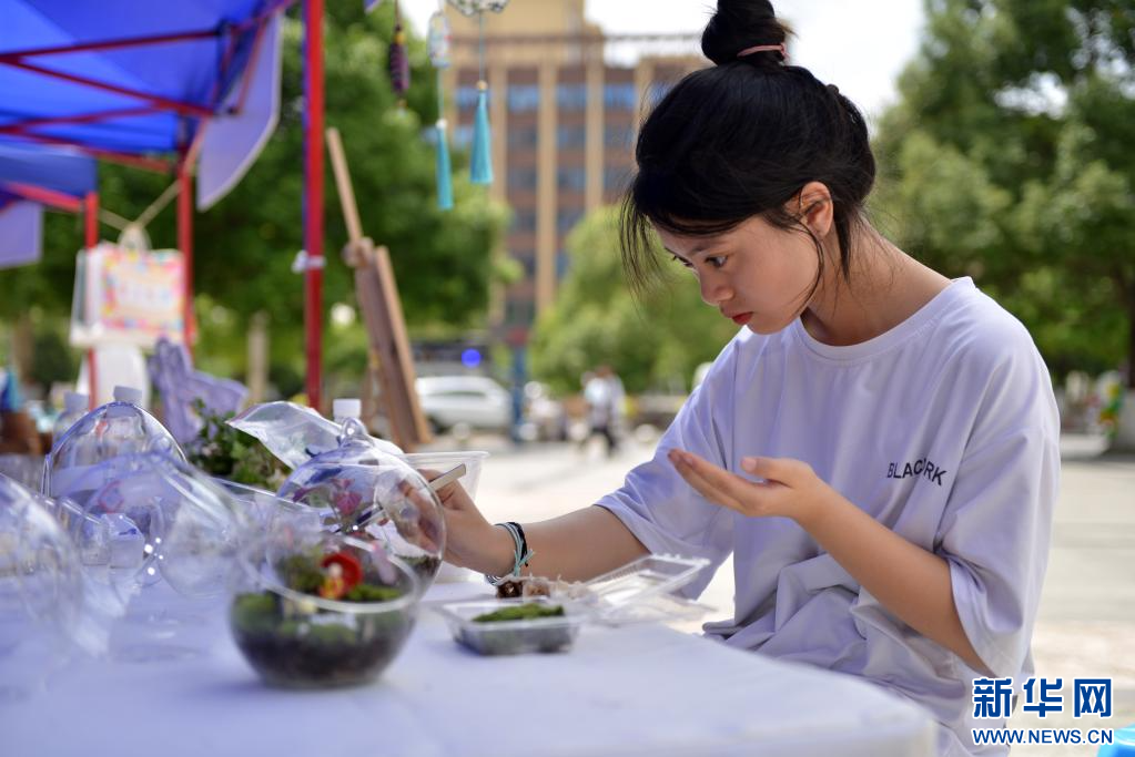 7月1日,贵州省龙里县中等职业学校的学生在进行园林微景观制作技能展示。新华网发(冯涛 摄)