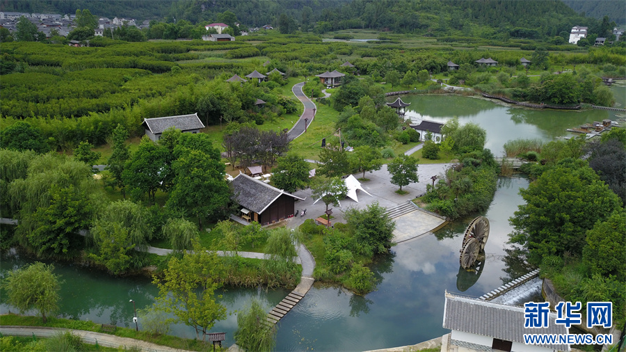 梵净山下江口县一处湿地公园(无人机照片,7月5日摄)。新华网 黄勇摄