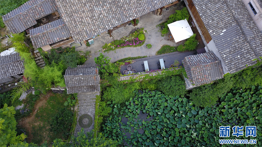 梵净山下江口县一处村落的农家小院(无人机照片,7月5日摄)。新华网 黄勇摄