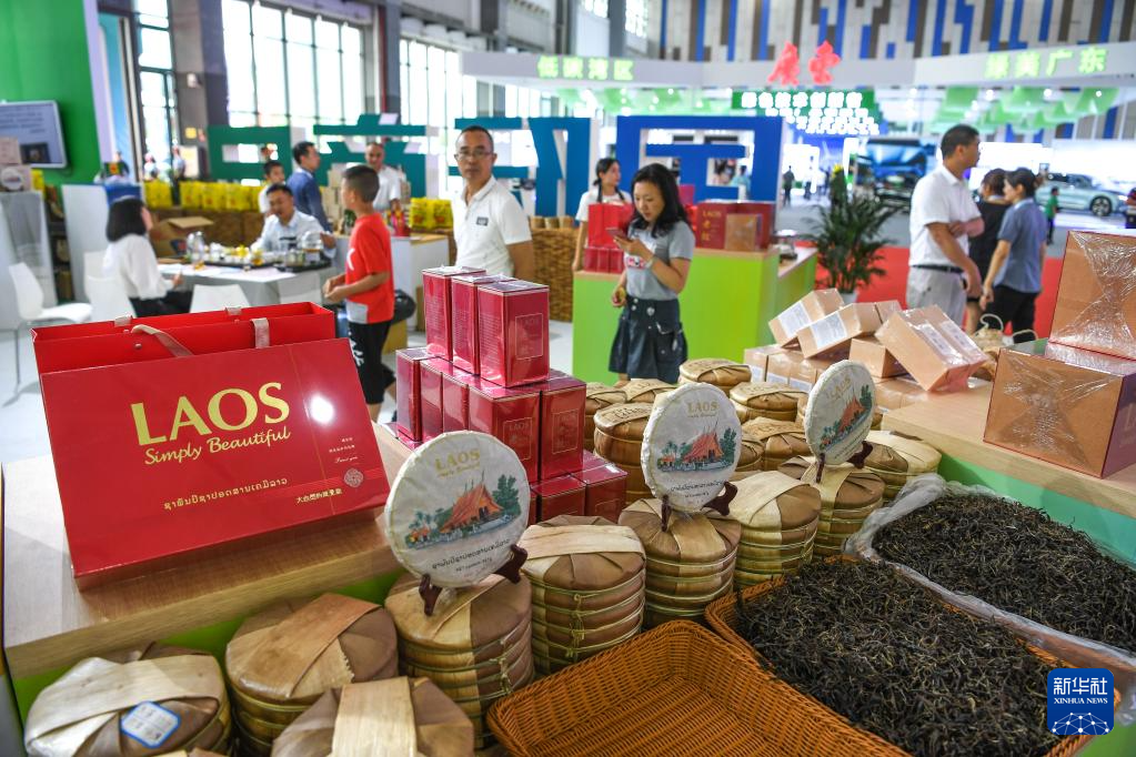 这是在2023年生态文明贵阳国际论坛绿色创新产品展上展出的老挝茶(7月8日摄)。新华社记者 杨文斌 摄