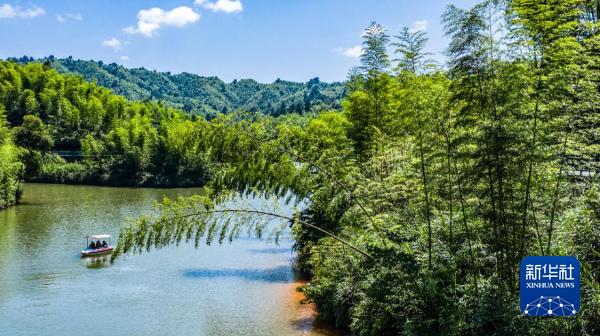 游客在贵州省赤水竹海国家森林公园内游玩(2020年6月25日摄,无人机照片)。新华社记者陶亮摄