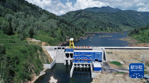 这是2021年7月28日拍摄的哈萨克斯坦图尔古孙水电站(无人机拍摄)。图尔古孙水电站项目于2017年开工建设,是共建“一带一路”框架下中哈产能合作水电领域首个落地的重点项目。新华社发(奥斯帕诺夫摄)