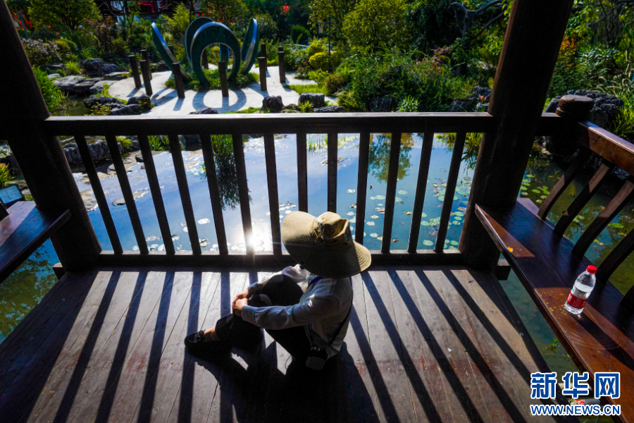 7月1日,游客在贵州省都匀绿博园景区游玩。新华网发(李晓果 摄)