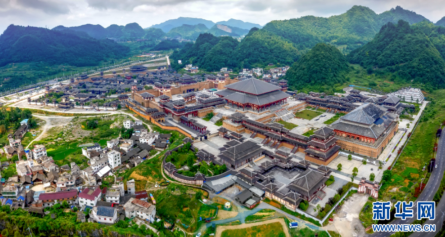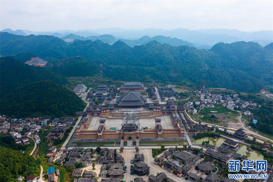 7月2日拍摄的贵州省都匀市秦汉影视城(无人机照片)。新华网发(田捷民 摄)