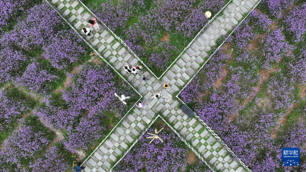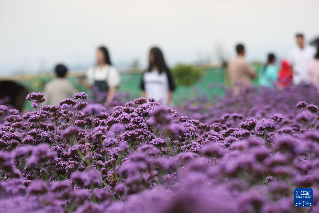 夏日时节,贵州省贵阳市花溪区石门花海景区的马鞭草迎来盛开期,吸引了许多游客前来赏花游玩。