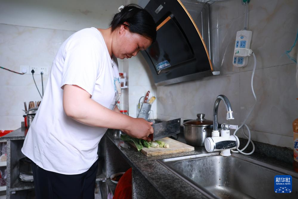 柏杨林街道搬迁居民龙如美在家中做饭(7月13日摄)。新华社记者 刘续 摄