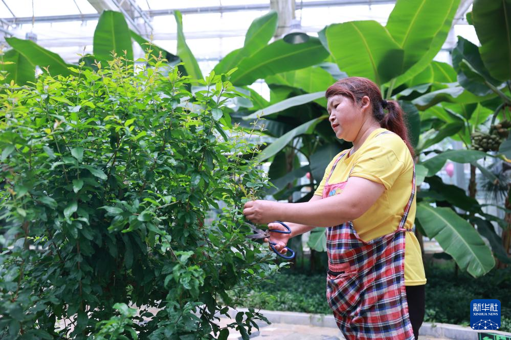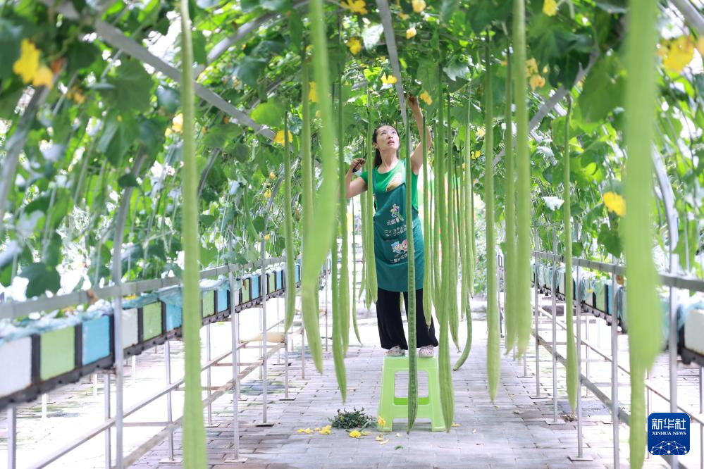 柏杨林街道生态农业观光园,搬迁居民在劳作(7月13日摄)。新华社记者 刘续 摄