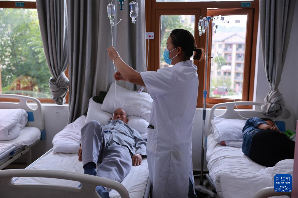 柏杨林街道社区卫生服务中心,医护人员为患者治疗(7月13日摄)。新华社记者 刘续 摄
