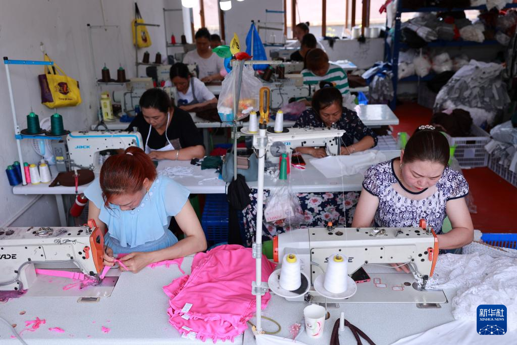柏杨林街道就业帮扶车间,搬迁居民在工作(7月13日摄)。新华社记者 刘续 摄