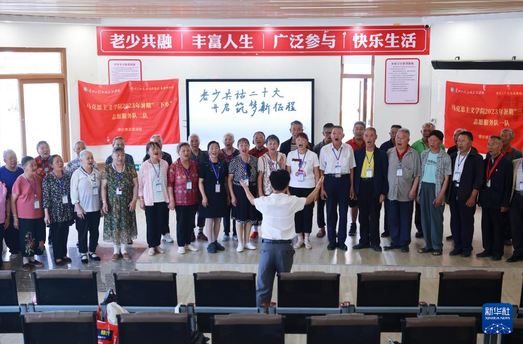 柏杨林街道长幼日间托养照料中心,老年人在练习唱歌(7月13日摄)。新华社记者 刘续 摄