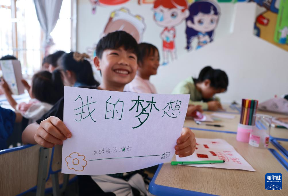 柏杨林街道,一名孩子写下梦想(7月13日摄)。新华社记者 刘续 摄