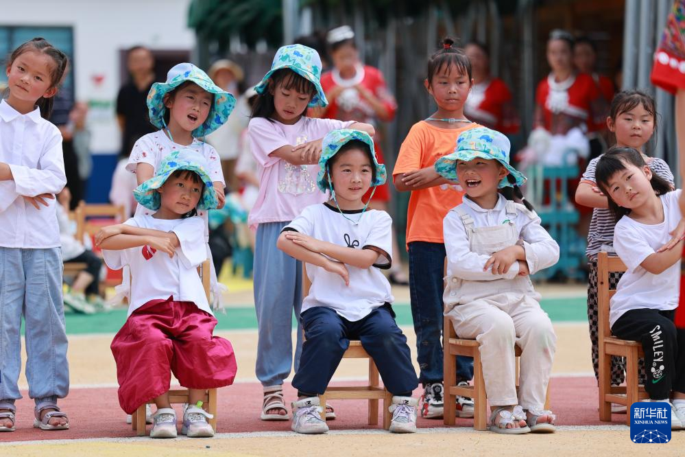 柏杨林街道的七星关区第三幼儿园,孩子们在表演节目(7月13日摄)。新华社记者 刘续 摄