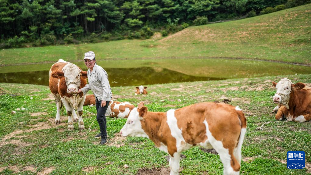 贵州威宁彝族回族苗族自治县雪山镇村民宋红梅在屋后的山坡放牛(7月13日摄)。新华社记者 陶亮 摄