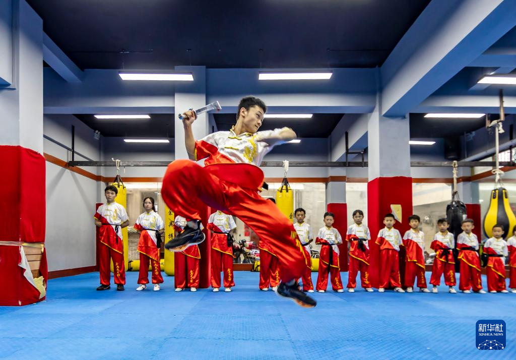 7月19日,学生在贵州省黔西市一家武术培训中心练习刀法。新华社发(范晖摄)