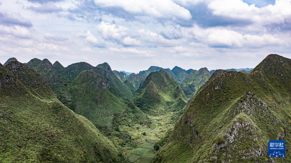 夏日,位于贵州省六盘水市六枝特区新窑镇的播雨峰林绿意盎然,千姿百态的峰林景观构成一幅美丽的生态画卷。