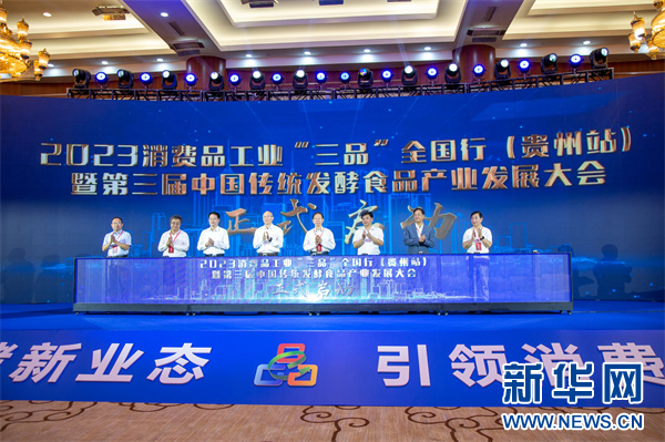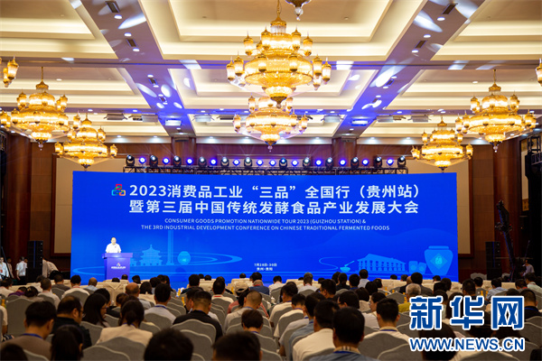 新华网贵阳7月28日电 7月28日,“2023消费品工业‘三品’全国行(贵州站)暨第三届中国传统发酵食品产业发展大会”在贵州省国际会议中心召开。大会主题为“创新发酵新业态 引领消费新时尚”,在为期两天的时间里,将同时举行“2023中国白酒技术创新论坛”“2023中国调味品与预制菜产业创新技术高峰论坛”等多个分论坛。